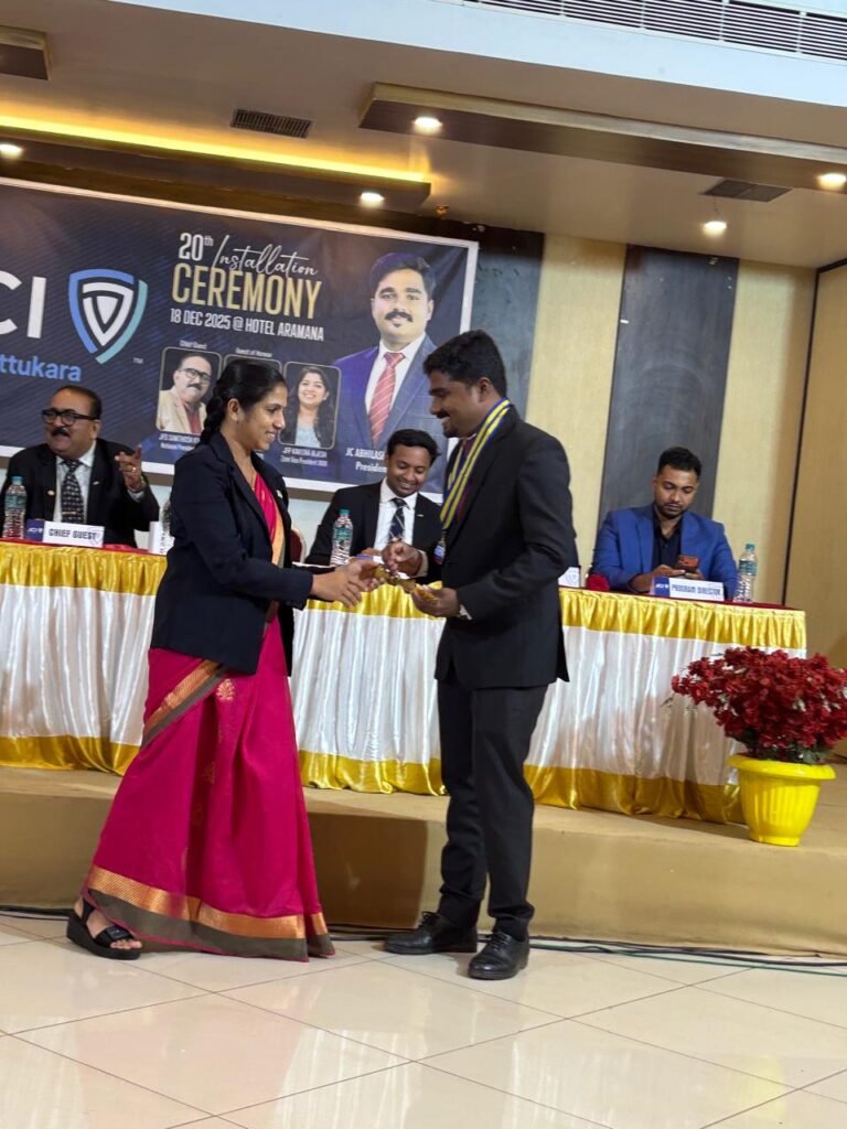 The ceremony was chaired by JC Abhilash, who assumed leadership responsibilities for the year, marking the beginning of a new chapter focused on leadership development, growth, and impactful community initiatives.
